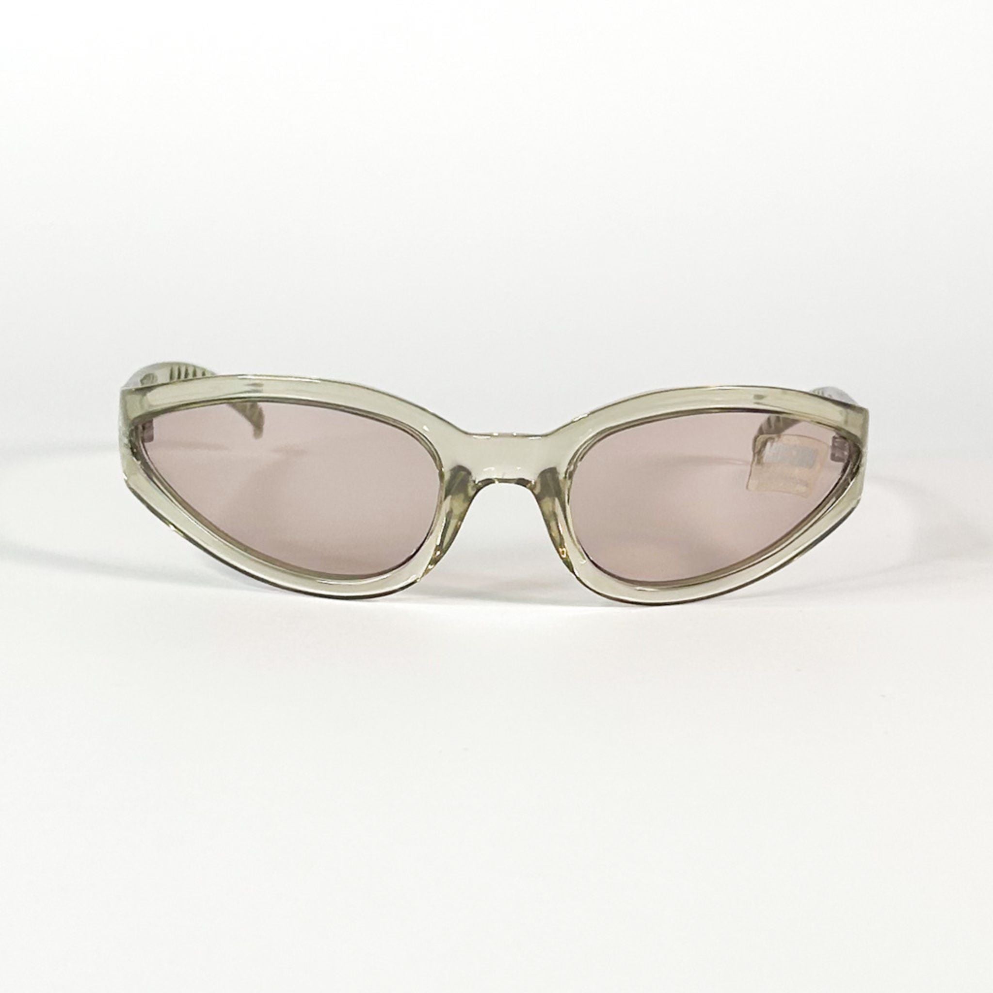 This vintage Moschino frame, dating from the 1990s and 2000s, reflects a period when the brand explored bold shapes and innovative materials. The choice of translucent beige acetate offers both lightness and strength, with an aesthetic characteristic of the era.