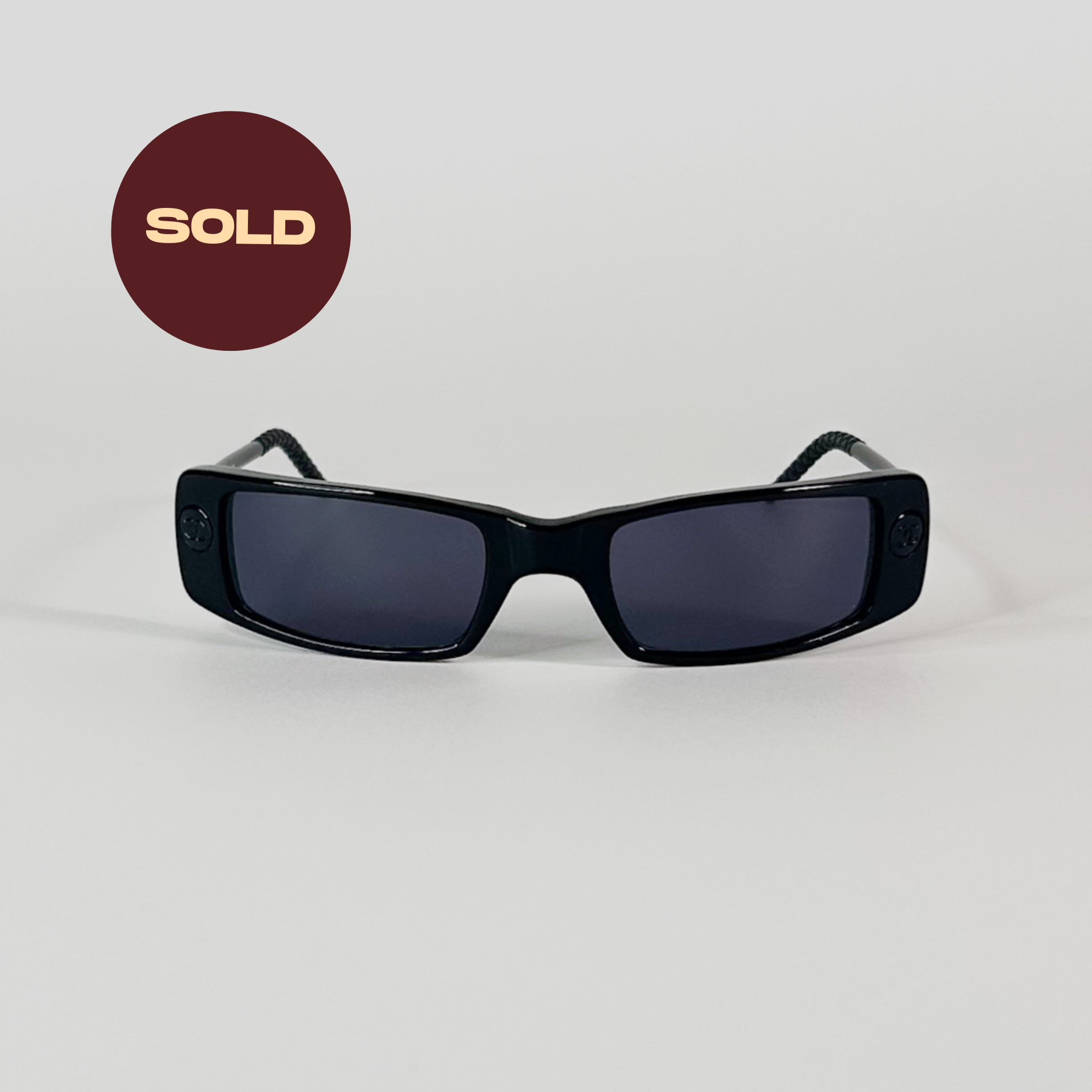 This pair of Chanel 5036 c.501/91 glasses embodies the assertive aesthetic of the early 2000s. Its narrow, minimalist rectangular silhouette reveals a graphic approach typical of this decade, where Chanel translated its couture codes into a more futuristic visual language.