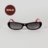 Moschino MO02203 glasses, narrow oval shape in black and red acetate, heart detail on the bridge, made in Italy, 1990s–2000s.