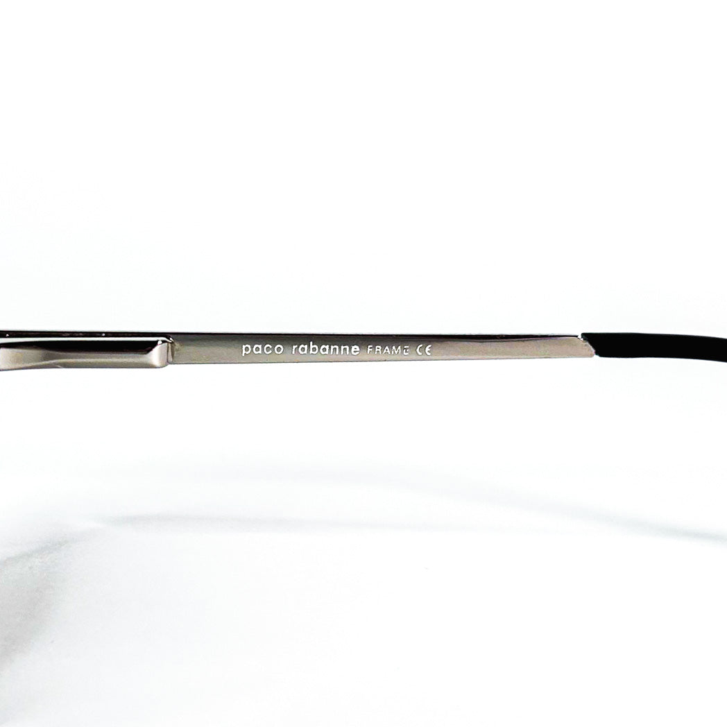 Lunettes Paco Rabanne PR-9302, monture ovale en métal argenté, design minimaliste emblématique des années 1990
