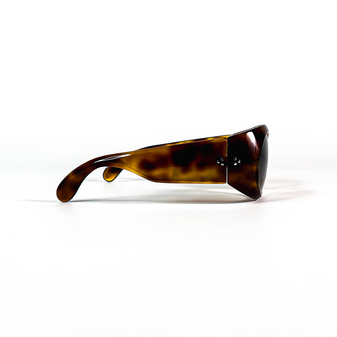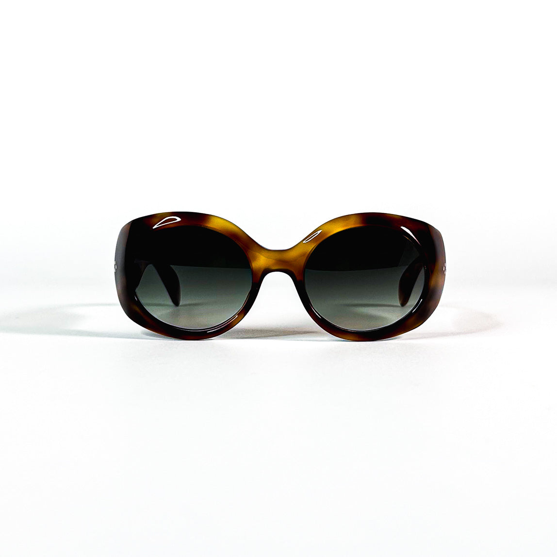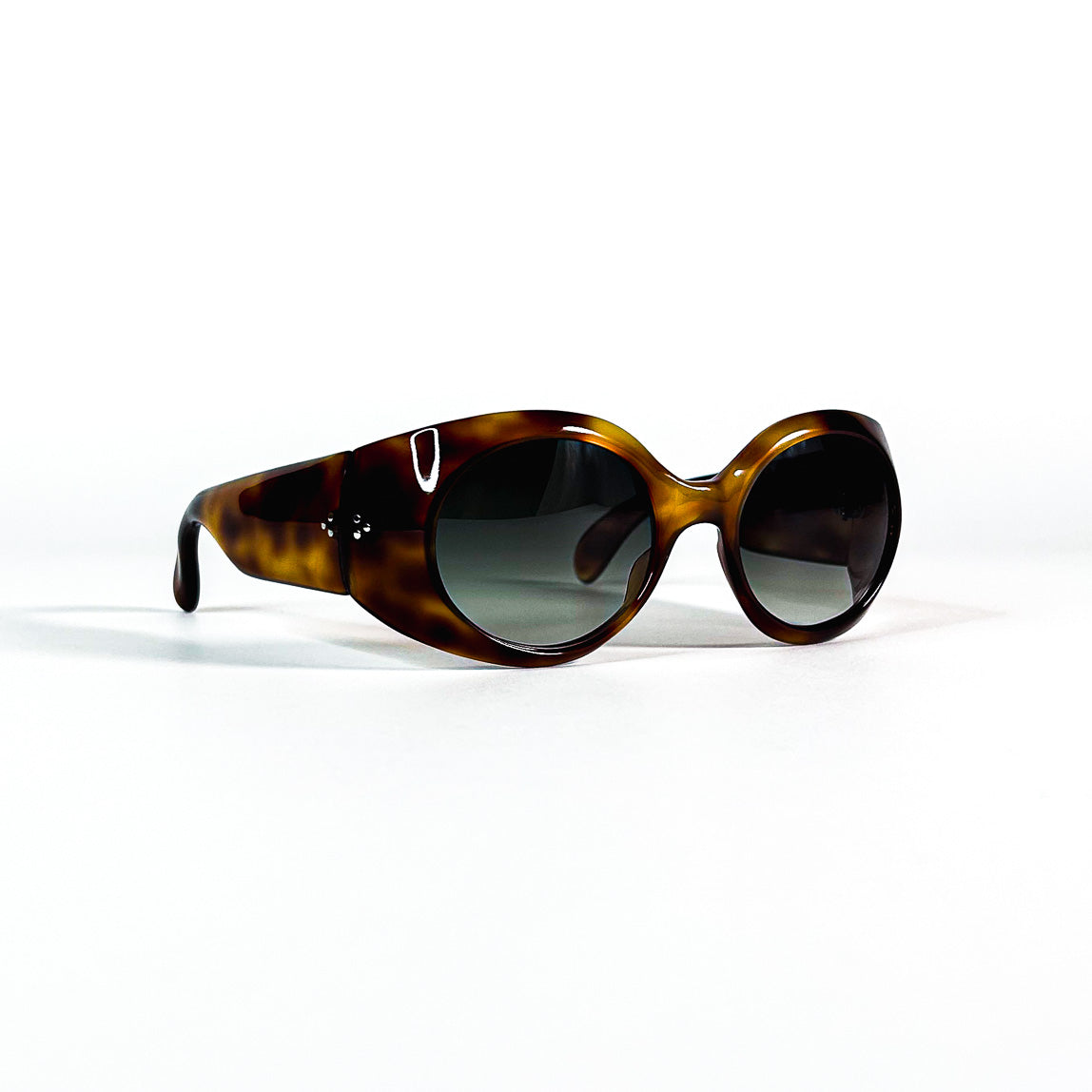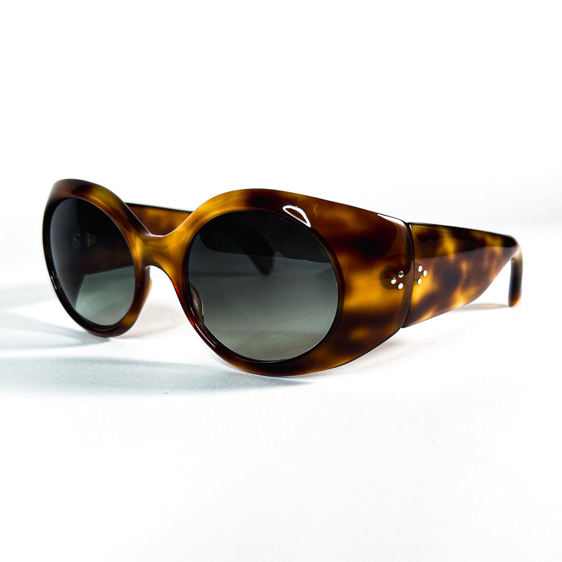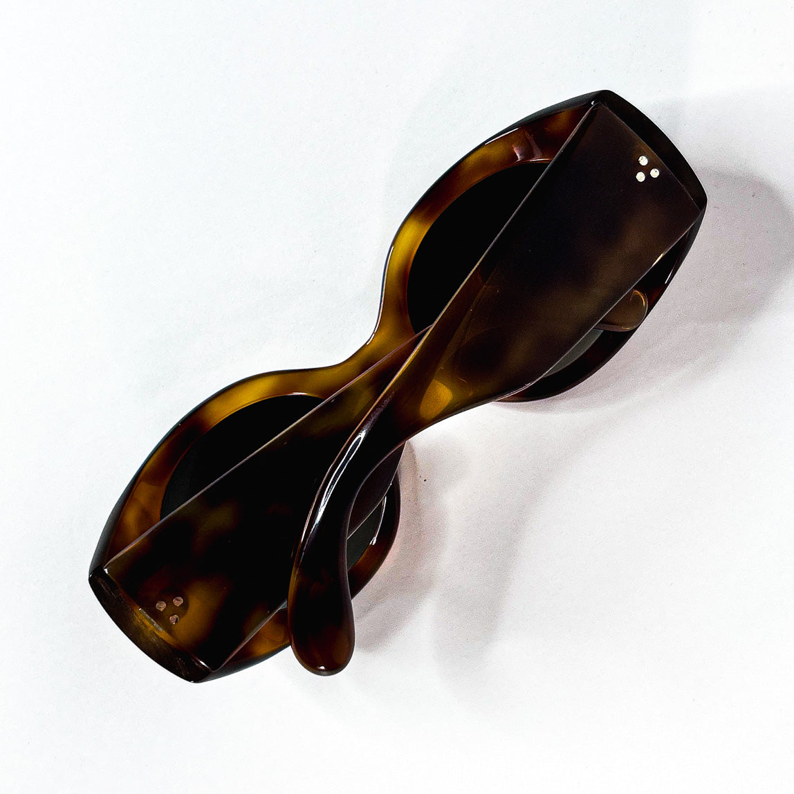 Magnifique monture ronde épaisse en acétate écaille brun, style vintage 1960‑70s, branches larges, pont keyhole.