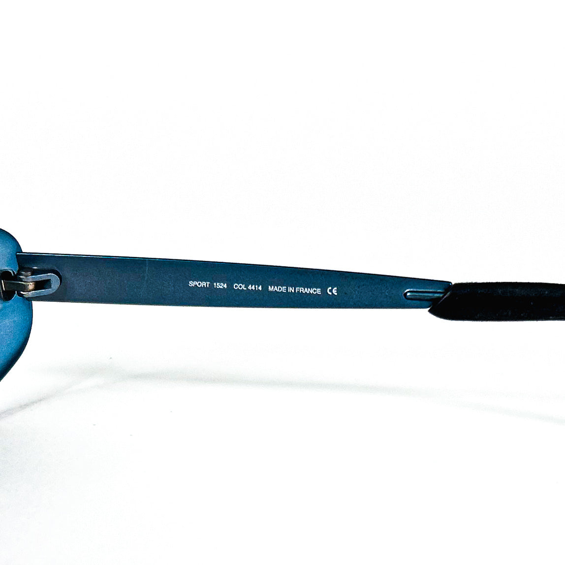 Lunettes Lacoste SPORT 1524 COL 4414 rectangulaires en acétate bleu givré, années 2000, branches perforées.